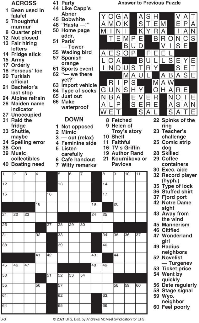 Crossword Aug 3 2021 Tribstar Com